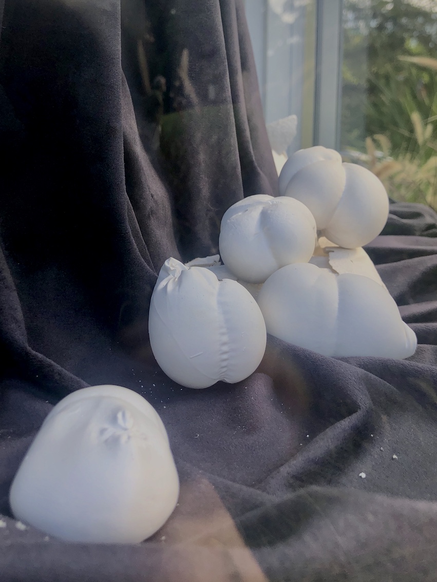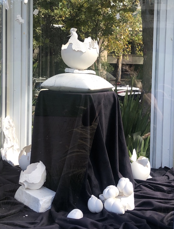 Featuring marble, plaster, string and nylon thread, Light as Air plays with concepts such as fragile v solid, and heavy v light.